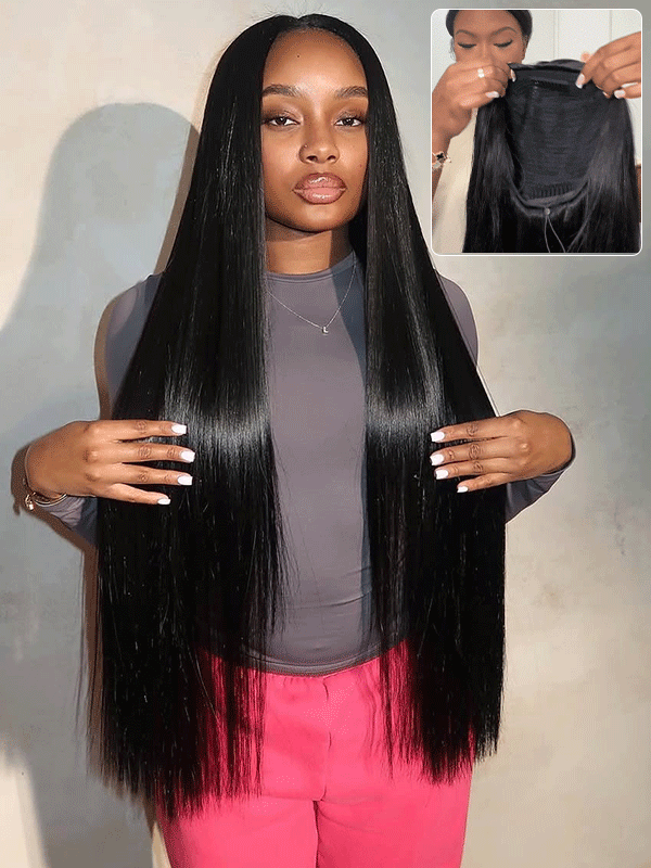 India Lundie Sterly 3-In-1 Straight Half Wig Glueless Install with Drawstring Flip Over Wig Beginner Friendly