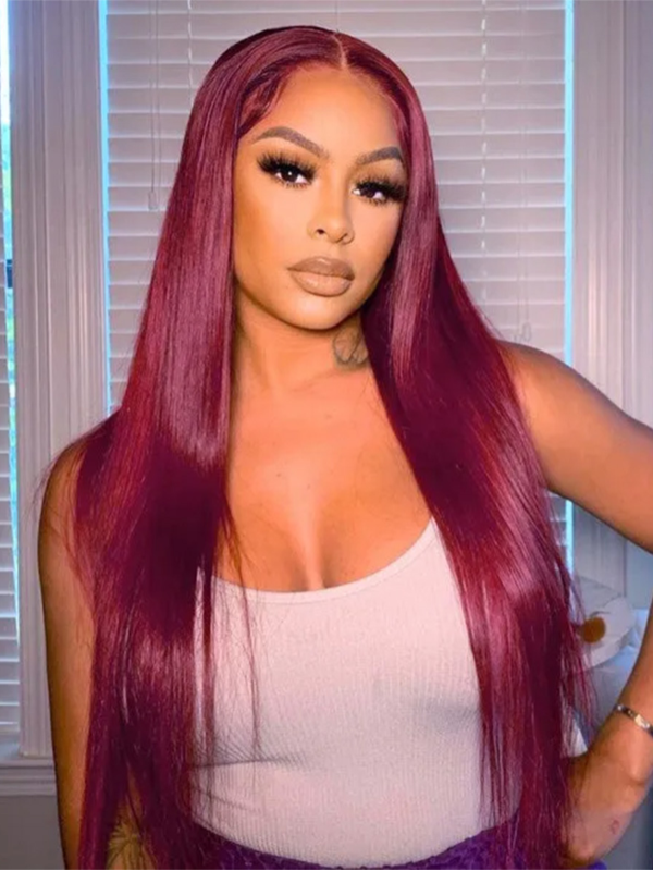 Flash Sale |#99J Straight Hair Wig 13×6 Burgundy Lace Front Wig 250% Density Human Hair
